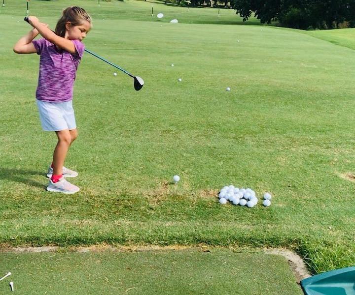 When she’s with her instructor, I take the littles off to the side lest someone gets struck in the head with a driver. And, more often than not, we all end up crammed into a tiny pocket of shade while I dish out food and drinks to a not-so-quiet chorus of “I’m stirsty” and “MOM I’M HUNGRY!”